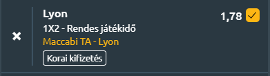 Egy Single Value Tipp következik, vagyis a sportfogadásban egy olyan értékelhető szorzó, amely single játékba küldés esetén is értéket hordoz magában! A Maccabi Tel Aviv még nem nyert meccset az idei Európa Ligában, ráadásul még mindig semleges helyszínen, a TSC Arénában fogadja az ellenfeleit, ezúttal a francia Lyon csapatát.