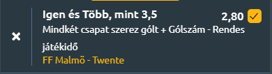 Tipp: Mindkét csapat szerez gólt és több, mint 3,5 gól a mérkőzésen