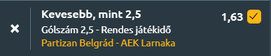 Egy Single Value Tipp következik, vagyis a sportfogadásban egy olyan értékelhető szorzó, amely single játékba küldés esetén is értéket hordoz magában! A Partizan hazai pályán fogadja az AEK Larnacát az Európa-liga selejtezőjének visszavágóján. Az első találkozót Athénban rendezték, ahol a ciprusi csapat hazai pályán 1-0-ra nyert Enzo Cabrera második félidőben szerzett góljával, így előnyből várja a visszavágót.