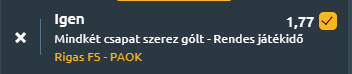 - Mindkét csapat támadó stílusban játszik, a hazai pálya előnye és a PAOK idegenbeli labilitása alapján gólváltás várható.