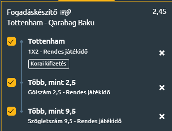 Tipp: Tottenham nyer + több mint 2,5 gól + több mint 9,5 szöglet a mérkőzésen