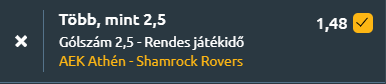 - Ma este az OPAP Arénában csap össze az AEK Athén és a Shamrock Rovers az Európa-konferencialiga mai játéknapján. Az AEK Athén stabil formát mutat a szezon során, hiszen a Konferencialigában eddig három győzelmet, egy vereséget és négy döntetlent ért el, meccsenként átlagosan 1,75 gólt szerezve, miközben csak 0,88-at kapott. Az utóbbi öt mérkőzésükön három győzelem és két vereség a mérleg, ebben az időszakban átlagosan két gólt lőttek és 1,2-t kaptak, legutóbb pedig 1–0-ra győztek a Panaitolikos ellen. A görög együttes jelenleg a 12. helyen áll a Konferencialiga összesített rangsorában, és a statisztikák alapján támadásban és védekezésben is kiegyensúlyozott teljesítményt nyújt. Ezzel szemben a Shamrock Rovers jóval gyengébb formát mutat, hiszen a sorozatban eddig három győzelem, három vereség és két döntetlen a mérlegük, meccsenként 1,38 rúgott és 1 kapott gólos átlaggal. Az utóbbi öt találkozón mindössze egy győzelmet arattak, négyet elveszítettek, és ezalatt csupán 0,6 gólt szereztek, miközben 1,4-et kaptak. Legutóbb 2–1-re kikaptak a Sligo Roverstől, ami tovább rontotta formájukat. Mindezek alapján az esélyek egyértelműen az AEK Athén sikerét ígérik, hiszen a hazai pálya, a jobb forma és a stabilabb támadójáték is mellettük szól. A mérkőzésen várhatóan legalább három gól születik majd!