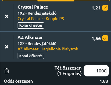 - Crystal Palace – KuPS: A Konferencia Liga alapszakaszának zárófordulójában a továbbjutásért küzdő Crystal Palace fogadja a szintén életben maradni akaró finn KuPS csapatát a Selhurst Parkban. A Crystal Palace továbbra is versenyben van a legjobb nyolc közé jutásért a 36 csapatos mezőnyben, debütáló európai idényében eddig öt mérkőzésen három győzelmet és két döntetlent jegyez, legutóbb pedig egy magabiztos, 3–0-s idegenbeli sikert aratott a Shelbourne ellen, ami javította a nyolcaddöntős esélyeket a Strasbourg elleni korábbi vereség után. A Palace a kilencedik helyen áll, mindössze egy pontra a top nyolctól, így egy döntetlennel legalább a rájátszást biztosítaná, de a cél a győzelem és az automatikus továbbjutás. A KuPS első európai ligafázisos szereplését teljesíti, öt meccsen hat pontot gyűjtött egy győzelem, három döntetlen és egy vereség mellett, jelenleg a 25. helyen áll, egy pontra a rájátszást érő pozícióktól. Az első három forduló után öt ponttal indultak, ám azóta két nyeretlen mérkőzésen gólképtelenek maradtak, így sorsuk már nem kizárólag a saját kezükben van. A finn bajnokságot november elején megnyerő KuPS számára vereség esetén biztos a kiesés, döntetlennél pedig más eredmények alakulása is számít, miközben idegenben az utóbbi nyolc európai meccsből hetet gól nélkül zártak. Mindkét csapat számára kulcsfontosságú az összecsapás, a Palace sokkal erősebb és otthon játszik!