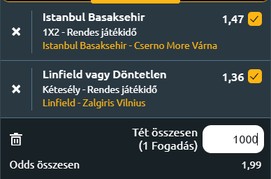 - Linfield – Zalgiris Vilnius: A továbbjutás még teljesen nyitott, hiszen az első mérkőzés 0-0-s döntetlennel zárult Litvániában. A tét a továbbjutás, és a lehetőség, hogy a győztes egy lépéssel közelebb kerüljön a főtáblához. Mindkét csapatnak bőven van mit bizonyítania, így feszült, kiélezett összecsapás várható a Windsor Parkban. A visszavágón a tét súlya mindkét csapaton érezhető lesz, és a gól nélküli első mérkőzés miatt már egy találat is eldöntheti a párharcot. Bár a Zalgiris az utóbbi időben stabil védekezést mutatott, idegenben jóval gyengébben teljesít, és a Linfield hazai pályán motiváltan, történelmi siker kapujában játszhat. Mindezek alapján a hazai győzelem mellett a döntetlen még elképzelhető!