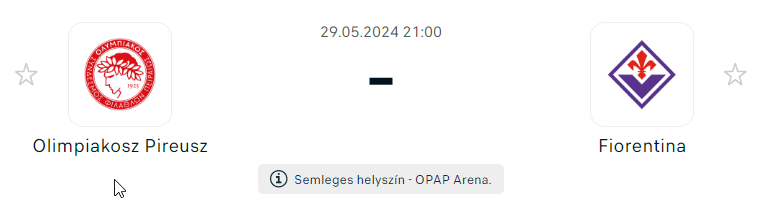 - A tavalyi, West Ham United elleni EKL-döntőben, Jarrod Bowen 90. percben szerzett góljával a Fiorentina vereséget szenvedett. A lilák eltökélt szándéka, hogy a mai győzelemmel megszerzik a trófeát, és ezzel bónusz helyet szereznek a következő szezonra az újonnan átalakított Európa Ligába. Az Athénba vezető úton a Serie A-ban szereplő együttes 13 európai mérkőzés óta veretlen, ami története leghosszabb sorozatát jelenti. A csoportban veretlenül (a Ferencváros ellen két döntetlennel) az első helyen végezve jutottak tovább. A kieséses szakaszban a Fiorentina a Maccabi Haifa ellen a hosszabbításban szerezte meg a győzelmet, majd a Viktoria Plzen ellen hosszabbításban, majd egy késői Lucas Beltran-büntető süllyesztette el a Club Bruggét. A bajnokságban csak 8. lett a Fiorentina, a kupából pedig kiestek. Ez így összesítve kudarc. Vincenzo Italiano utolsó-előtti meccse ez, még hátra van az Atalanta elleni elhalasztott meccs, az lesz a búcsú meccs. A Fiorentina egyetlen hiányzója a szélső Riccardo Sottil, aki a hónap elején kulcscsonttörést szenvedett. Nagyon készülnek a döntőre, a legutóbbi mérkőzésen olyan állandó kezdőjátékosok pihentek, mint Nico Gonzalez, Arthur, Lucas Beltran és Christian Kouame.