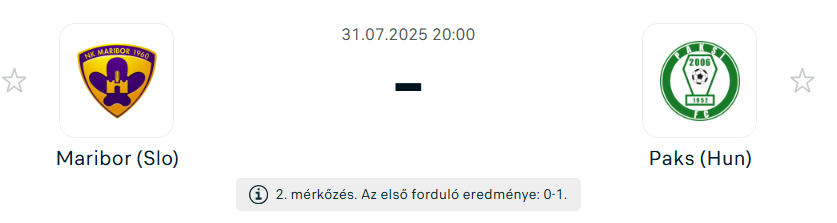 Szlovéniában, hazai körülmények között fogadja a Paksot a Maribor a Ljudski stadionban a Konferencialiga selejtezőjének visszavágóján. Az első meccsen a Paks minimális előnyt szerzett hazai pályán, így nyílt küzdelemre lehet számítani a továbbjutásért.