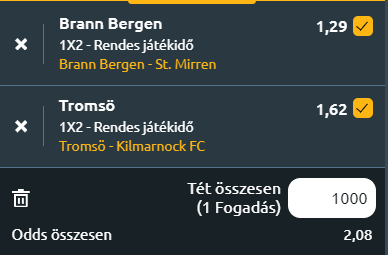 Az aktuális nap sporteseményeiből válogatunk és így keresünk egy olyan szelvényt, amely alacsony kockázaton ad ki egy közel duplázó szelvényt. A mai összeállítás két olyan EKL-meccsből áll, amelyeknek a két résztvevője egy-egy skót és norvég alakulat!