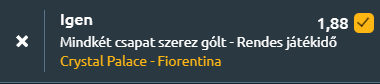- Mire számíthatunk mindezek alapján? A Selhurst Parkban két formába lendült csapat feszül egymásnak, hiszen a Crystal Palace és a Fiorentina egyaránt veretlen sorozattal érkezik a Konferencia Liga negyeddöntőjébe. A londoniak hazai pályán ritkán stabilak, de az európai kupameccsek rendre kihozzák belőlük a legjobbat, míg az olaszok idegenben is bátran vállalják a nyílt játékot, és az utóbbi hetekben újra megtalálták a góllövő cipőt. Mindkét oldalon alacsony a kapott gól nélküli arány, a gólok többsége pedig a második félidőben érkezik, ami tovább növeli a gólváltás esélyét. A statisztikák alapján a BTTS nemcsak valószínű, hanem a legjobb értéket is kínálja a mérkőzés fogadási piacai közül.