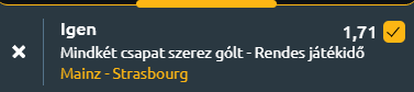Mire számíthatunk mindezek alapján? A Konferencia Liga csütörtök esti rangadóján Mainz és Strasbourg olyan párosítást hoz, amelyben a számok alapján szinte garantált a nyílt játék. A németek hazai xG‑eredményei stabilak, a franciák idegenben rendre gólváltásos meccseket játszanak, és egyik fél sem jeleskedik a kapott gólok elkerülésében. A FootyStats BTTS‑mutatói mindkét oldalon magasak, a gólok többsége pedig a második félidőben érkezik, ami tovább növeli a találatok esélyét. A gólváltás a találkozó legjobb értéket kínáló választása.