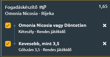 - Mire számíthatunk mindezek alapján? Az Omonia remek hazai formája és a Rijeka idegenbeli bizonytalansága a ciprusiak felé billenti a mérleg nyelvét. A 1X mellett a vendégek védekező felfogása miatt nem várhatunk háromnál több gólt.