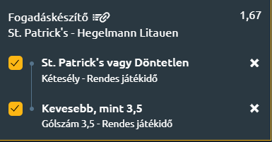 - A litván Hegelmann az előző szezonban a második helyen végzett hazája bajnokságában, de az aranyéremtől 12 pont választotta el őket. Jelenleg is a második helyen állnak, de megint messze vannak az éllovastól. Nemzetközi tapasztalatuk szinte nincs: a 2023/24-es idényben csak egyetlen párharcuk volt, ahol a Shkupi 5–0-val búcsúztatta őket. A formájuk hullámzó, de a fogadási szempontból releváns adatok szerint kilenc utolsó meccsükből öt végződött 2,5 gól alatt. Európai kupameccseiken egyébként még nem szereztek gólt. Legutóbb ugyan 5–2-re nyertek a Siauliai FA ellen, de a vezetőedző, Andrius Skerla maga is elismerte, hogy nehéz mérkőzés volt, így nem feltétlenül számíthatnak hasonló támadójátékra Dublinban.