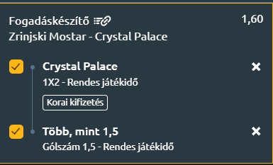 Egy Single Value Tipp következik, vagyis a sportfogadásban egy olyan értékelhető szorzó, amely single játékba küldés esetén is értéket hordoz magában! Tovább menetel a Crystal Palace, amely Bosznia-Hercegovinában, a Zrinjski Mostar otthonában kezdi a Konferencia-liga rájátszását.