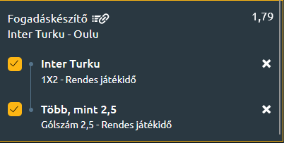 - A turkui alakulat négy fordulóval az alapszakasz vége előtt az élről várhatja a folytatást, miután 18 meccsen 40 egységet zsebelt be. A társulat - egyedüliként a ligában - még nem szenvedett vereséget. 11 siker mellett hétszer döntetlenezett. Ami az otthoni teljesítményét illeti, nos, az 5-4-0--sá sorhoz 21-6-os gólkülönbség társul. Az Inter remek passzban érkezik a mai csatára, két magabiztos sikert könyvelhetett el az elmúlt hetekben.