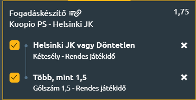 - Mire számíthatunk mindezek alapján? Egyértelmű, hogy a lendületben lévő és taktikai szempontból kiegyensúlyozottabb HJK Helsinki az esélyesebb. KuPS ugyan hazai pályán képes lehet megszorítani a bajnokaspiránst, így döntetlennél rosszabb nem lehet vendégoldalról. Ami pedig a gólok alakulását illeti, minimum két találatot láthat a nagyérdemű.
