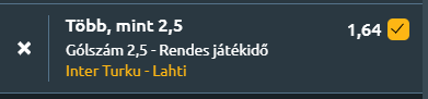 - Inter Turku katasztrofális szezonkezdete után végre sikerült javítaniuk a formájukon. Az utolsó öt fordulóban három győzelmet arattak (Haka 3:1, Lahti 2:0 és VPS 3:1), egy döntetlent játszottak a Hakával (0:0), és egy vereséget szenvedtek a második helyezett Ilvestől (0:2). Érdekes módon az Inter az utóbbi öt fordulóban szerzett tíz pontjával már összesen 14 pontot gyűjtött, ami némileg enyhítette a rossz szezonkezdetet. A Lahti elleni mérkőzés előtt a hazai csapat a nyolcadik helyen áll, és elsődleges céljuk, hogy a legjobb hat közé kerüljenek, ezzel biztosítva a rájátszást. Az Inter legnagyobb problémája idén a gyenge védelem, amit a 24 kapott gól is alátámaszt, ami a harmadik legrosszabb a ligában. Ez a gyenge védelem a mai tipp egyik fő érve! Ráadásul a Turkunak ma kiváló esélye van egy újabb jó eredmény elérésére!