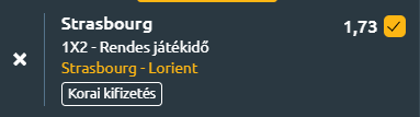 - A Ligue 1 mai játéknapján a Strasbourg hazai körülmények között fogadja a Lorient csapatát. A Strasbourg nehéz időszakon megy keresztül, a Toulouse elleni 1–0-s vereséggel hárommeccses bajnoki nyeretlenségi sorozatba került, és visszacsúszott a tabella nyolcadik helyére, miközben két pontra van az európai kupaindulást érő pozícióktól. A szezon elején még a szoros mérkőzések specialistája volt, első öt bajnokijából négyet egygólos különbséggel nyert meg, az utóbbi hetekben viszont éppen ezek a minimális különbségű vereségek jellemzik, három meccsen mindössze egy gólt szerezve. Hazai pályán idén eddig csak háromszor kapott ki a csapat és ma jó esélyük van nyerni! A Lorient stabilizálta helyzetét, kétmeccses győzelmi sorozatának köszönhetően hat ponttal a kiesőzóna fölött áll, és az utóbbi hat bajnokijából ötön pontot szerzett. Ugyanakkor idegenben továbbra is komoly gondjai vannak! 12 mérkőzés óta nyeretlen vendégként, mindössze két gólt szerzett ebben a szerepkörben, hét fellépéséből ötön betalálni sem tudott. A Strasbourg hazai pályán, fegyelmezett játékkal meg tudja verni az idegenben gyenge Lorient csapatát!