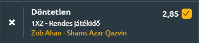 - Egzotikus helyszínen fejezzük be a körképet, a helyszín Irán, ahol a Persian Gulf Pro League 17. fordulójában a Folād Shahr Stadionban csap össze a Zob Ahan és a Shams Azar Qazvin. Egyértelműen gyengébb formában lévő-, gólképtelen csapatok küzdenek meg egymással. Két Döntetlenkirály-csapatról van szó! A legutóbbi öt mérkőzésén a Zob Ahan 1 győzelmet és 4 döntetlent ért el, míg a Shams Azar Qazvin 0 győzelmet, 2 vereséget és 3 döntetlent hozott. Legutóbb a Zob Ahan 0–0-t játszott a Tractor Sazival, a Shams Azar Qazvin pedig 1–1-et a Gol Goharral. Az egymás elleni legutóbbi mérkőzés 1–1-es döntetlennel zárult, az elmúlt négy összecsapásból a Zob Ahan kettőt nyert, a Shams Azar Qazvin egyet, és egyszer döntetlen született. A szezonban a Zob Ahan 2 győzelmet, 4 vereséget és 7 döntetlent szerzett, 0,69–0,85-ös gólátlaggal, a Shams Azar Qazvin 1 győzelem, 4 vereség és 8 döntetlen mellett 0,77–1-es gólaránnyal. Az under 2,5 gól dominál! Az elmúlt 10 mérkőzésből mindkét csapatnál 9 alkalommal kevesebb mint 2,5 gól született. A Zob Ahan és a Shams Azar Qazvin gyenge gólszerző képessége, a sok döntetlen a szezonban és az egymás elleni mérleg kiegyensúlyozottsága indokolja, hogy a találkozón a döntetlen a legvalószínűbb kimenetel.