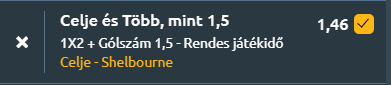 - Még mindig Konferencia Liga, ahol Celjében csap össze a hazai Celje és az ír Shelbourne, ahol a tabellán elfoglalt helyezések és az esélyszámok alapján a szlovén csapat számít esélyesebbnek. A hazaiak legutóbb 3–0-s vereséget szenvedtek a Rijekától, az elmúlt öt mérkőzésükön pedig egy győzelem, három vereség és egy döntetlen szerepel, meccsenként 1,2 rúgott és 1,6 kapott gólos átlaggal. A Konferencia Liga-idényben eddig hat győzelmet és három vereséget jegyeznek döntetlen nélkül, átlagosan két gólt szerezve mérkőzésenként. A Shelbourne a 34. helyről érkezik, legutóbb 3–0-ra kapott ki a Crystal Palace-tól, és az elmúlt öt meccsén egy győzelem, három vereség és egy döntetlen a mérlege, 0,6 rúgott és 1,6 kapott gólos átlaggal. Az idény során két győzelem, négy vereség és egy döntetlen szerepel a nevük mellett, támadásban visszafogottabb teljesítménnyel. Hazai pályán a Celje esélyes a győzelemre, még ha nem is lesz könnyű meccs.
