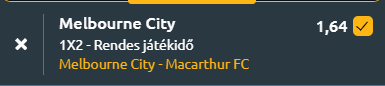 - Egy korai meccsel kezdünk, az ausztrál labdarúgó-bajnokság nyolcadik fordulójából elhalasztott meccs következik, ahol a Melbourne City és a Macarthur FC csap össze, és a győzelem komoly elmozdulást hozhat a felsőházban. A jelenleg negyedik helyen álló Melbourne City három győzelemmel, három döntetlennel és két vereséggel 12 pontot gyűjtött, legutóbb azonban 1–0-ra kikapott a Melbourne Victorytól, ami megszakította hárommeccses győzelmi sorozatát. Az elmúlt öt mérkőzésen két győzelem, két döntetlen és egy vereség a mérlegük, miközben átlagosan 0,8 gólt szereznek és mindössze 0,4-et kapnak, ami jól mutatja a csapat védekezésének stabilitását! Hazai pályán gyakran jól kezdik a mérkőzéseket, az utolsó 15 otthoni bajnokijukból tízszer vezettek a félidőben, ugyanakkor támadásban hullámzó a teljesítményük, amit jelez, hogy legutóbbi 13 bajnokijukból háromszor gól nélkül maradtak. A Macarthur FC a hetedik helyről várja az összecsapást, mérlege három győzelem, két döntetlen és három vereség, legutóbb 2–1-re nyert a Brisbane Roar ellen, ami a második sikere volt az utóbbi négy bajnokin. Játékukra a kiegyensúlyozottság és az óvatosság jellemző, ezt támasztja alá, hogy legutóbbi 14 bajnokijukon kivétel nélkül 3,5 gól alatt maradt a végeredmény. A csapat gyakran a második félidőben veszélyesebb, ugyanakkor lassan kezdi a meccseket, hiszen az elmúlt 20 bajnokijából 19-szer nem vezetett a szünetben, idegenben pedig az utolsó tíz alkalomból hatszor hátrányban volt félidőben. A két csapat legutóbbi egymás elleni mérkőzését Melbourne City nyerte 2–0-ra. A Melbourne City hazai pályán enyhe előnyben van, és várhatóan meg is nyeri a mérkőzést!