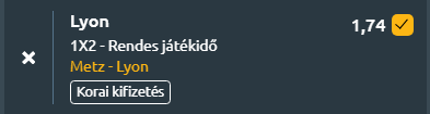 - Még mindig a francia élvonalban járunk, ahol a bennmaradásért küzdő Metz fogadja a negyedik helyen álló Lyont, miközben a bajnoki hajrá közeledtével mindkét csapat számára egyre nagyobb a tét. A Metz nehezen kezdett újoncként, Stephane Le Mignan együttese az első 18 bajnokijából mindössze hármat nyert meg, és jelenleg hat mérkőzés óta nyeretlen a Ligue 1-ben. A legutóbbi fordulóban Strasbourgban szenvedtek 2–1-es vereséget, önbizalmukat pedig tovább rombolja a védekezésük, amely egész idényben komoly problémát jelentett, a csapat már 40 gólt kapott, ami a liga legrosszabb mutatója. Ennek ellenére a sereghajtó képes volt nagyobb ellenfelek ellen is meglepetést okozni, győzni tudott Lens és Nice ellen, valamint egy szoros, 3–2-es vereségre kényszerítette a Paris Saint-Germaint. A Lyon az idény eleji pénzügyi nehézségek árnyékából kilépve hét egymást követő győzelmet aratott minden sorozatot figyelembe véve. Paulo Fonseca csapata az Európa-ligában is sikeres, a Young Boys elleni idegenbeli 1–0-s győzelemmel biztosította helyét az egyenes kieséses szakaszban, míg a bajnokságban tíz emberrel játszó Brest ellen nyert 2–1-re Pavel Sulc és Abner Vinicius góljaival. A Metz ugyan képes lehet felnőni a feladathoz hazai pályán, ám a Lyon sorozatban aratott győzelmei és stabil teljesítménye alapján a vendégek fölénye érvényesülhet!