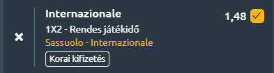 - Az Inter 2026 elején ellépett a mezőnytől, és egy újabb győzelemmel akár nyolc pontra is növelheti fórját a második helyezett AC Milannal szemben. A bajnoki cím visszahódításáért zajló hadjárat legutóbb is magabiztosan haladt tovább, a Cremonese ellen Lautaro Martinez és Piotr Zielinski góljaival nyertek, ami sorozatban a harmadik siker volt minden sorozatot figyelembe véve, a Pisa elleni 6–2 és a Borussia Dortmund elleni 2–0 után. Az Olasz Kupában is elődöntőbe jutottak, miután Monzában, több kulcsember pihentetése mellett, 2–1-re legyőzték a Torinót. Idegenben különösen félelmetes a Chivu-csapat, sorozatban hét bajnoki vendégmeccset nyertek, ami a klub történetének harmadik legjobb ilyen szériája. A Sassuolo azonban hagyományosan kellemetlen ellenfél, a 23 bajnoki egymás elleni mérkőzésből tízet megnyert, és az utóbbi három találkozóból kettőt is behúzott, igaz, az idényben a San Siróban 2–1-re kikapott. A Serie A-ba egy év kihagyás után visszatérő Sassuolo 29 ponttal stabil középcsapat, legutóbb Pisában nyert 3–1-re, Domenico Berardi góljával megalapozva a sikert, és ezzel egymást követő bajnokikat nyert Fabio Grosso együttese. A Sassuolo rendszerint megnehezíti az Inter dolgát, ám a listavezető formája, különösen idegenben, továbbra is kiemelkedő! A minőségi különbség vendégsikert eredményezhet.
