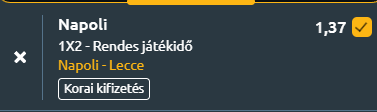 - A bajnoki címvédésről már lecsúszó Napoli szombat este a kiesés elől menekülő Leccét fogadja a Stadio Maradonában, ahol a hazaiaknak a Bajnokok Ligája-indulásért folyó versenyben kell megőrizniük előnyüket. A nápolyiak jelenleg a Serie A harmadik helyén állnak, jócskán lemaradva az éllovas Inter mögött, viszont öt ponttal előzik meg az ötödik Comót tíz fordulóval a vége előtt. Antonio Conte együttese legutóbb zsinórban másodszor nyert 2–1-re, amikor legyőzte a Torinót. A Napoli most sorozatban harmadik bajnoki sikerére készül, miközben hazai pályán tovább nyújtaná kiváló veretlenségi sorozatát! A gárda immár 24 élvonalbeli meccs óta nem kapott ki otthon, ami jelenleg a legerősebb aktív sorozat Európa öt topligájában. A Lecce ugyanakkor javuló formában érkezik. A Cremonese elleni fontos győzelemmel eltávolodtak a kiesőzónától, és az utóbbi öt bajnokijukból hármat megnyertek, ugyanannyit, mint az azt megelőző 17 mérkőzésen. A salentói együttes védekezése a mezőny közepéhez tartozik a ligában, a gondot inkább a támadójáték pontatlansága jelentette. Az egymás elleni közelmúlt azonban a Napoli mellett szól, a Lecce az utóbbi öt találkozón még gólt sem szerzett ellenük, és a legutóbbi hármat egyaránt 1–0-ra elveszítette. A Lecce formája javult, de a nápolyiak hazai stabilitása döntő lehet, így a Napoli jó eséllyel megszerzi a három pontot.