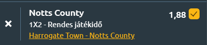 - A kiesés elől menekülő Harrogate Town a magasra törő Notts Countyt fogadja a League Two 40. fordulójában. A Harrogate az elmúlt hét mérkőzéséből mindössze egy győzelmet tudott szerezni, legutóbb 1-0-ra kikapott az Oldham Athletictől, míg a vendégek 3-0-s vereséget szenvedtek ugyanattól az ellenféltől. Az eddigi szezon során a gárda mindössze 29 gólt szerzett 39 mérkőzésen, ami a legalacsonyabb mutató a ligában, csak Stephen Duke-McKenna és Jack Muldoon ért el öt gólt. A Harrogate a kiesőzónában áll, egy ponttal a biztonság felett, és sérülések miatt változtatásokra kényszerül a kezdőcsapatban. A Notts County 21 győzelemmel, 7 döntetlennel és 11 vereséggel a negyedik helyen áll, támadósoruk 64 gólt szerzett, ami a legjobb mutatók közé tartozik, és a legutóbbi vereség után is erős visszavágásra készülnek. A vendégeknek a legkevesebb gólt szerző és legrosszabb hazai teljesítményű Harrogate ellen hatalmas lehetőségük nyílik, hogy visszatérjenek a győztes útra! Vendégsiker várható!