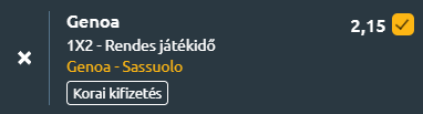 - A kiesőzónától távolodó Genoa hazai pályán fogadja az igyekvő Sassuolót. A Genoa Daniele De Rossi irányítása alatt a 14. helyre kapaszkodott fel, de 33 pontjával még mindig csak hat egységgel előzi a kieső helyen álló Leccét, így folyamatosan hátrafelé kell figyelnie. A gárda az utóbbi öt meccséből hármat elveszített, de két győzelmet is begyűjtött ebben az időszakban. A Marassiban viszont erősebb arcát mutatja mutatja a gárda, az utolsó hat hazai meccséből négyet megnyert, többek között a Romát is legyőzte. A Sassuolo újoncként stabil szezont fut, 42 ponttal a 10. helyen áll, de már nincs reális esélye az európai kupaszereplésre. Legutóbb a Cagliari ellen fordítottak és nyertek 2–1-re, miután korábban döntetlent játszott a Juventusszal. Idegenben azonban akadozik, az utóbbi kilenc vendégmeccséből csak kettőt nyert meg, és 2026-ban még egyszer sem tudott kapott gól nélkül lehozni egy találkozót. A hazai pályán stabilabb Genoa és az idegenben gyengébb Sassuolo párharcában a nagyobb motiváció a hazaiak felé billentheti a mérleget.
