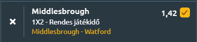 - A Middlesbrough az ötödik helyen állva, hazai pályán fogadja a Watfordot még versenyben a feljutást érő pozíciókért, bár egy hétmeccses nyeretlenségi sorozat jelentősen visszavetette esélyeit. A Sheffield Wednesday elleni szűk, 1–0-s siker ugyan életben tartotta a reményeket, és az Ipswich elleni 2–2-es döntetlen is azt jelezte, hogy a csapat kezd visszatalálni a helyes útra, ám a hazai forma korábban komoly problémát jelentett, hiszen január vége óta nem tudott nyerni a Riverside Stadionban egészen a legutóbbi sikerig. A Watford látványosan visszaesett, három vereségből álló sorozata a 15. helyre sodorta, és Ed Still állása is veszélybe került, miután 14 mérkőzésen mindössze 13 pontot szerzett a csapat. Különösen aggasztó, hogy az Oxford United, a Sheffield United és a West Bromwich Albion ellen elszenvedett vereségek során gólt sem szerzett, miközben hetet kapott, és az utóbbi hat meccsen összesen csak kétszer talált be. Idegenben négy egymást követő vereséget szenvedett el, miközben még a 17. helyre való visszacsúszás veszélye is fennáll. A Middlesbrough számára nagy a tét, de ellenfele gyenge formája egyértelműen felé billenti a mérleget, és minden adott ahhoz, hogy hazai pályán megszerezze a győzelmet.