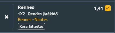 - A Rennes a Bajnokok Ligája-indulásért folytatott versenyben fogadja a kiesés elől menekülő Nantes együttesét. A bretonok az ötödik helyen állnak 30 forduló után, és a Strasbourg elleni 3–0-s sikerrel tovább erősítették pozíciójukat, Franck Haise kinevezése óta mindössze két bajnokin veszítettek pontot, egyetlen vereségüket még március közepén, a Lille ellen szenvedték el. Négy fordulóval a vége előtt mindössze egy pont választja el őket a Lyon mögötti Bajnokok Ligája-helytől, és ugyanennyivel maradnak el a selejtezőt érő pozíciótól is. Nagyon jó formában vannak, négymeccses győzelmi sorozatot produkáltak ebben az idényben, és most ismét elérhetik ezt a szériát, bár hazai pályán az utóbbi három meccsből kettőn pontokat hullajtottak. A Nantes elleni mérlegük egyértelmű fölényt mutat, az utolsó hét egymás elleni találkozót megnyerték. A Nantes komoly bajban van, a kiesőzónában tartózkodik, és legutóbb a PSG ellen 3–0-s vereséget szenvedett. Vahid Halilhodzic csapata ugyan az utóbbi négy bajnokiból háromszor pontot szerzett, de hét mérkőzés óta nyeretlen, és támadásban is komoly gondokkal küzd! Az utolsó négy élvonalbeli meccsén mindössze egy gólt szerzett, idegenben pedig sorozatban négy találkozón maradt gólképtelen. A bennmaradás érdekében gyakorlatilag az összes hátralévő meccsét meg kellene nyernie! A Nantes jó formája éles ellentétben áll a Nantes gyengélkedésével, különösen támadásban, ami döntő különbséget jelenthet. A hazaiak lendülete és egymás elleni fölénye alapján magabiztos siker várható.