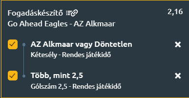 - Az AZ idegenbeli bizonytalansága és a Go Ahead Eagles hazai formája szoros mérkőzést vetít előre. A kiegyenlített küzdelemben a vendégek minimális fölénye dönthet, de a döntetlen is benne van a meccsben. A gólokat tekintve pedig legalább három találat várható.