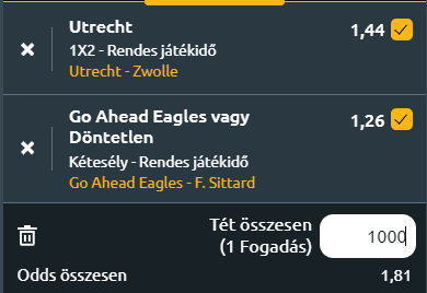 - FC Utrecht - PEC Zwolle: A házigazdák a hetedik helyen végeztek az elmúlt idényben, míg a Zwolle a 12. helyen zárta a 2023-24-es idényt. Az Utrecht az elmúlt idényben 34 bajnoki mérkőzésen 50 pontot gyűjtött, és ezzel a harmadik egymást követő szezonban a hetedik helyen végzett. A helyezés eredményeként Ron Jans csapata bejutott az Európa-konferencia-liga selejtezőjének rájátszásába, ahol az elődöntőben 3-1-re legyőzte a Sparta Rotterdamot, majd a döntőben hosszabbításos vereséget szenvedett a Go Ahead Eagles ellen és lemaradt Európárók. Az idei cél mindenképp az, hogy ki kell jutni Európába! A Zwolle csapatát legutóbb 5-1-re verték hazai környezetben. A Zwolle kis csóringer csapat, legutóbb megúszták a kiesést és ez lenne a cél idénre is. Johnny Jansen csapata kiábrándító eredményekkel melegített az új szezonra, hat barátságos mérkőzésükön két győzelmet és négy vereséget értek el. A Zwolle az Utrecht elleni legutóbbi mérkőzéseken is nehezen tudott győzelmet aratni, hiszen az előző nyolc bajnoki találkozójukból csak egyet nyertek meg. Ennek a meccsnek itt sima HAZAInak kellene lennie!
