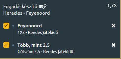 A sima V-ben így nincs is érték, ezért turbóztuk fel az alaptippet. 1.78-ért már érdemes pakolni a rotterdamiakat!