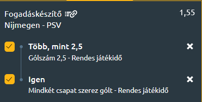 - Az elmúlt három kiírásban a NEC nem adta könnyen magát, sőt, legutóbb elverte a PSV-t előtte remizett a sztárcsapattal. Mindannyiszor jött a G/G+over opció - ez pedig ma is szimpatikus választánka tűnik!
