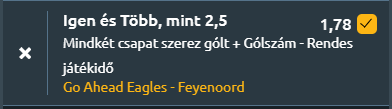 - Mire számíthatunk mindezek alapján? A mérkőzés kiegyenlített küzdelmet ígér, hiszen a Go Ahead Eagles hazai pályán képes lehet megnehezíteni a listavezető dolgát, ugyanakkor a Feyenoord motiváltan és jobb formában érkezik. Mindkét csapat támadó felfogásban lép majd pályára, ami gólokat eredményezhet. Mindkét oldalon és legalább hármat a meccsen.