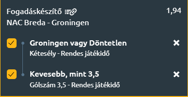 - Mire számíthatunk mindezek alapján? A mérkőzés esélyeit tekintve a Groningen tűnik valamivel esélyesebbnek, különösen a védekezésük javulása és a NAC gyenge hátsó alakzata miatt. Ugyanakkor a vendégek több kulcsembert is nélkülöznek, míg a NAC hazai pályán stabilabb teljesítményt nyújt. A vendégsiker mellett a döntetlennek van nagy esélye, de nem lesz három gólnál több a meccsen.