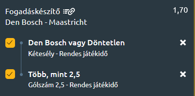 - A Maastricht 21 fellépésen 22 egységig jutott, ezzel a teljesítménnyel az alsóházban tanyázik. A gárda még nem játszott témeccset 2026-ban, decemberben egy brutális vereséggel búcsúzott a szurkolóitól (Cambuur 4-0). Előtte szeszélyesen teljesített, a 25 rúgott gól viszont meglehetősen szerény támadójátékra utal. Idegenben 2-3-6-os statisztika áll a neve mellett 10-23-as találati mutatóval.