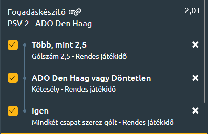 - A PSV második csapata egészen pazar szezon fut: a társulat 11 mérkőzésen 21 egységet húzott be eddig, ezzel pedig az előkelő 3. pozícióból várhatja a folytatást. Az enidhoveniek jobban is állhatnának, ám négy bajnoki óta nem tudnak nyerni, igaz, ebből háromszor ikszeltek. Mint ahogy pénteken is, amikor kétszer is vezettek az Ajax U21 ellen, a házigazda mindkétszer egyenlíteni tudott (2-2). Az együttes hazai környezetben 3-1-1-es sort produkált. Meccsei 64%-án jött az over opció.