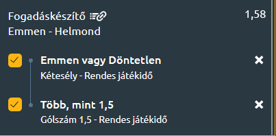- Az Emmen erősebb, és érzésünk szerint nem is marad pont nélkül a házigazda. A tippünk a hazaiak felé húz, de inkább lesimítottuk a szelvényt: az 1X mellé betettük a +1.5-öt is!