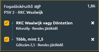 - A PSV fiataljai az 5. helyen állnak a tabellán, egy mai győzelemmel akár a dobogó alsó fokára is felléphetnének. A vendégcsapat 7. helyen áll, három pont megszerzésével ők is legalább a 4. helyre kerülnének. Gólgazdag meccs ígérkezik, hiszen mindkét gárda támadófocit játszik! A formák ezt támasztják alá, hiszen a kis PSV tízből kilencszer, az RKC pedig nyolcszor játszott 2,5 gólnál többet hozó meccset, és mindkét fél nyolc-kilenc alkalommal látott mindkét oldali gólt. A legutóbbi találkozókon a Jong PSV 3–1-re kapott ki a Vitesse-től, míg az RKC 1–0-ra verte az MVV Maastrichtot. A közös múlt inkább a hazaiak felé billenti a mérleget, öt egymás elleni meccsből négyszer a Jong PSV nyert, egyszer az RKC, döntetlen pedig nem született, ráadásul az átlaggólszám is magas (3.2 - 2.0). A legutóbbi öt meccsen a hazaiak 2 győzelem, 2 vereség és 1 döntetlen mellett 2.2-es rúgott és 2.4-es kapott gólátlaggal szerepeltek, míg a vendégek 2 győzelemmel, 1 vereséggel és 2 döntetlennel, 1.4-es gól- és 1.6-os kapott átlaggal készülnek.