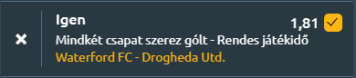- Két, a tabella alsó felében álló csaapt találkozik ma az ír első osztályú bajnokság mai meccsén. Míg a házigazdák március óta először szeretnének egymás után két hazai győzelmet aratni, addig a vendégek még mindig az első idegenbeli győzelmüket keresik a szezonban. Nagyjából kiegyenlítettek az erőviszonyok, de a közalmúltban nyújtott forma-, és a hazai pálya előnye miatt a waterford az esélyesebb. Viszont a Drogheda is képes lehet egy gólra!