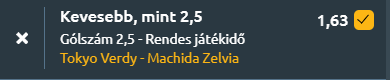 - A Tokyo Verdy az egyik legnehezebben legyőzhető csapat volt hazai pályán, most a liga legjobb idegenbeli mérlegével rendelkező csapatával találkozik, és az utolsó hat idegenbeli mérkőzésén veretlen. Ráadásul a fordított mérkőzésen a vendégek teljesen felülmúlták ezt az ellenfelet, és bár ez a mérkőzés valószínűleg nem lesz olyan egyoldalú, mint az előző, de sok gól nem valószínű, hogy lesz!