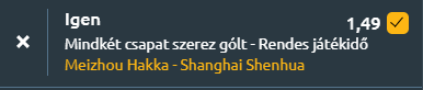 - A kínai élvonalban a középmezőnyben helyezkedő Meizhou Hakka látja vendégül a bajnoki címre hajtó Shanghai Shenhuát. A találkozót a wuhua-i Huitang Stadionban rendezik, ahol a két csapat formája, tabellán elfoglalt helyzete és a múltbeli összecsapások eredményei alapján a vendégek az esélyesebbek, de a hazaiak sem feltett kézzel mennek a pályára. A Meizhou Hakka jelenleg a bajnokság 10. helyén áll, és vegyes formát mutatott az idény során. Az eddig lejátszott 10 meccsükből 3 győzelmet szereztek, 4 alkalommal kikaptak, míg 3 döntetlennel zártak. Gólátlaguk 1,9 rúgott és ugyanennyi kapott találat meccsenként, ami kiegyensúlyozottságot jelez, de nem kiemelkedő teljesítményt. Az utóbbi öt mérkőzésükön 1 győzelem, 2 vereség és 2 döntetlen a mérlegük, ezek során 1,6 gólt szereztek és 1,8-at kaptak meccsenként. A Shanghai Shenhua jelenleg a bajnokság 2. helyén áll, és egyértelműen a bajnoki címre hajt. Az eddigi 10 mérkőzésükön 7 győzelem, 1 vereség és 2 döntetlen szerepel a nevük mellett, miközben meccsenként 2 gólt szereznek, és csupán 1,1-et kapnak, ami komoly stabilitást mutat a védekezésben. Az utóbbi öt mérkőzésükön 4 győzelem és mindössze 1 vereség a mérleg, 1,8 rúgott és 1 kapott gólos átlaggal. A vendégek jobb formában vannak, erősebb támadójátékkal és stabilabb védelemmel rendelkezik. Egy gólokban gazdag, de Shanghai Shenhua dominanciát hozó mérkőzésre lehet számítani, ahol a vendégsiker a legvalószínűbb, de a hazaiak is betalálhatnak!