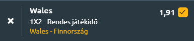 Talán a legnagyobb keresési találatot a sportfogadás témában a „Bet of the day” kulcsmondatra kapunk az interneten, vagyis a sportfogadást kedvelő olvasók arra kíváncsiak, mi lehet a nap tippje? Ezt a tippet keressük, amelyben van érték, érdemes single játékba küldeni. A nyári Európa-bajnokság rájátszásában Wales hazai környezetben fogadja Finnországot, aki nyer az a lengyel-észt párharc győztesével meccselhet.