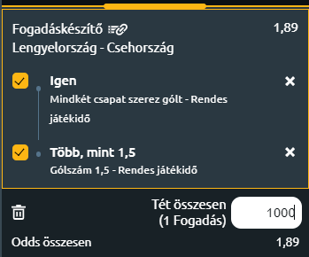 Ez a rovatom a Fogadáskészítő segítségével készült el. Az adott mérkőzést kielemezve 2-3 szempontból összeállított tippet küldök játékba, amelynek szorzója minden esetben a duplázó körüli értéket közelíti, de mégis jó esélyekkel indul! Az EURO 2024-es Európa-bajnokság selejtezőjében újabb mérkőzést rendeznek az E-jelű csoportban, ahol Lengyelország és Csehország találkozik a varsói PGE Narodowy stadionban.