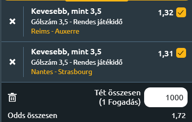 - Nantes – Strasbourg: A Strasbourg jó formában érkezik a mérkőzésre, hiszen az utóbbi 14 tétmeccsükből csak kettőt veszítettek el, legutóbb pedig idegenben is értékes győzelmet arattak Auxerre ellen. Különösen a csapat védelme erős, hiszen ez volt a negyedik egymást követő mérkőzésük a bajnokságban kapott gól nélkül! A Nantes gyengélkedik, mindössze négy pont választja el őket a kiesőzónától, és az elkövetkező hetekben több nehéz mérkőzés is vár rájuk. Bár otthon eddig gyengén teljesítettek, legutóbbi hazai meccsükön sikerült 3-1-re legyőzniük a Lens csapatát, ami némi reményt adhat számukra. Mivel Strasbourg védelme az utóbbi időben rendkívül stabil, míg Nantes támadójátéka felemás, nem várhatunk ezen a meccsen sem gólparádét. Kevesebb, mint 3,5 gól a meccsen!
