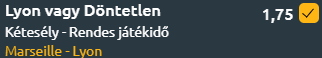 Az előzmények alapján a Lyon pontszerzésére adott 1,75-ös odds nagyon jónak tűnik számunkra.
