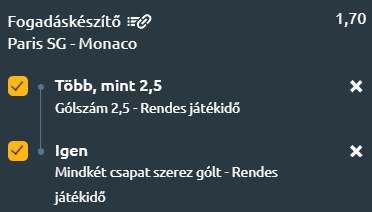Ősszel a Monaco legyőzte Luis Enrique csapatát 1-0-ra, tehát látszik, hogy a hercegségbeliek jól tudnak játszani a fővárosiak ellen, ezért a mindkét csapat szerez gólt fogadást tartjuk a legjobb ötletnek.