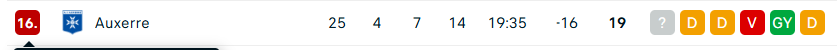 - Az Auxerre valószínűleg a szezon végéig a túlélésért fog küzdeni a Ligue 1-ben. A fehér-kékek február óta bizonyos fokú következetességgel gyűjtögetik a pontokat. Az utolsó hat meccsből csak egyszer kaptak ki, legutóbb a viszonylag erős, jelenleg 8. Strasbourg ellen játszottak hazai pályán döntetlent.