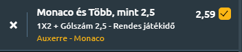 Tipp: Monaco nyer + több mint 2,5 gól a mérkőzésen